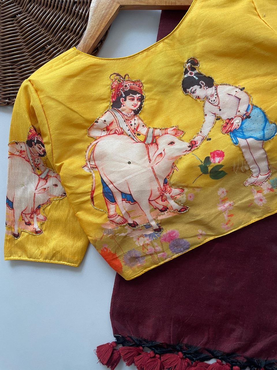 Crafted with care, the saree features high-quality Khadi cotton fabric that is not only lightweight but also incredibly breathable, ensuring all-day comfort no matter the occasion. The blouse is made from heavy raw silk, meticulously hand-crafted with intricate designs and stylish prints, showcasing a fusion of modern patterns and traditional handwork. Together, these materials exude class and ensure durability for long-term use.