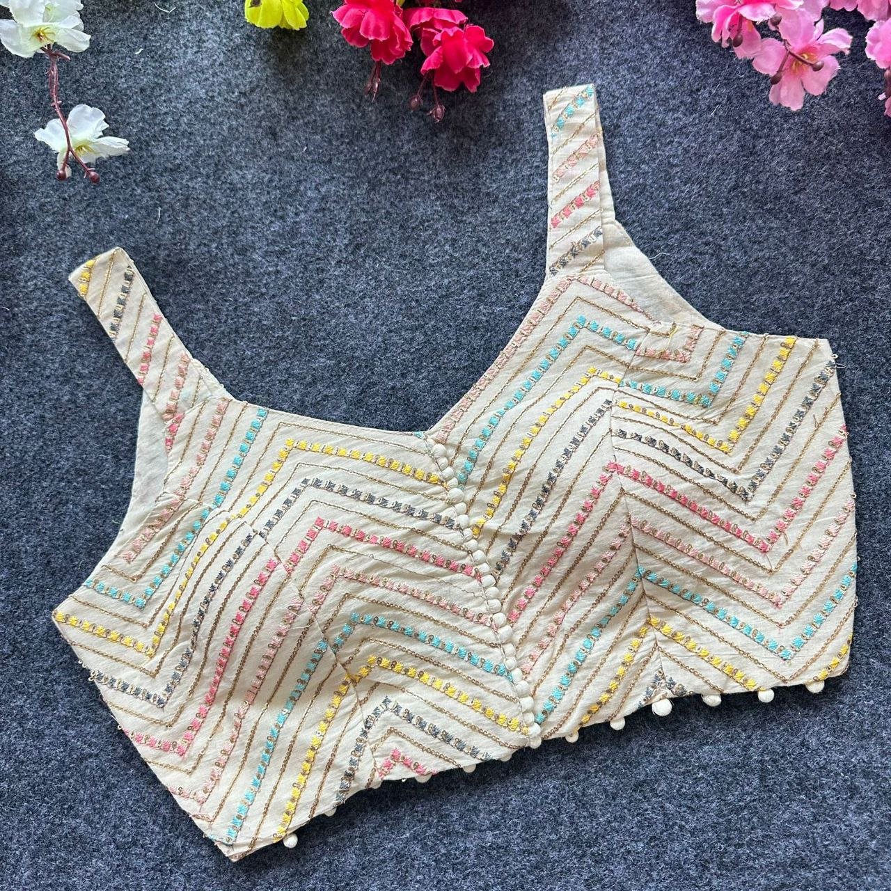 Discover Blousewala’s expertly crafted Camric Sleeveless Blouse, designed with innovation and style in mind. This special design blouse offers versatility like no other! Its dyeable fabric allows you to customize the color to match your unique preferences, making it an ideal choice for those who love expressing their individuality through fashion. Whether you’re attending a casual gathering or a grand event, this blouse is your go-to option for effortless elegance and adaptability.