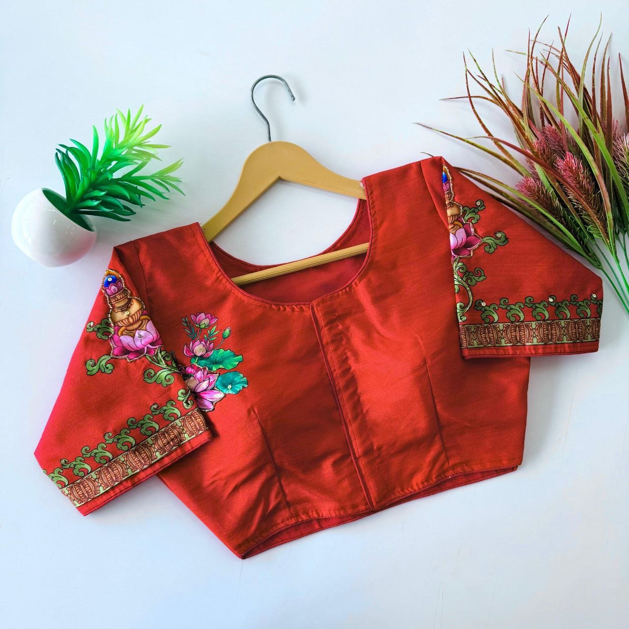 Available in versatile sizes ranging from 38 to 42, this silk blouse is designed to flatter diverse body shapes and preferences. The thoughtfully tailored fit enhances your silhouette while ensuring maximum comfort. Whether you pair it with a traditional saree or a trendy skirt, this blouse seamlessly blends style and versatility, giving you endless outfit possibilities.