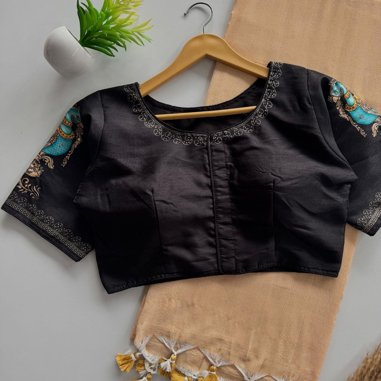 What sets this saree apart is the accompanying blouse crafted with intricate stitch-printed handwork. Masterfully designed, the blouse adds a captivating touch to the ensemble, creating a harmony between classic aesthetics and refined craftsmanship. Available in sizes ranging from 38 to 42, it ensures a flexible fit so you feel confident and poised every time you wear it.