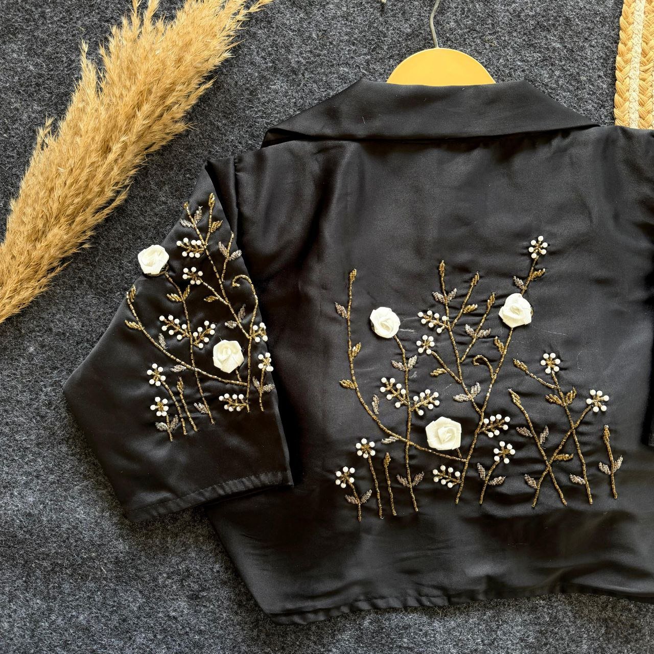 The craftsmanship in this designer blouse is truly a work of art. Featuring beautiful handwork designs intricately placed across the back and sleeves, it radiates sophistication and finesse. Each detail has been carefully curated to add a designer touch, ensuring you stand out in a crowd. Whether you’re attending weddings, festive celebrations, or formal events, the blouse’s design is versatile enough to complement any occasion.
